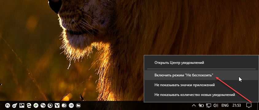 Этот метод стоит порекомендовать тем, кого, в целом, не раздражают оповещения, но в некоторых случаях хочется отключить всплывающие окна. Например, когда вы смотрите кино или работаете, не желая отвлекаться на посторонние сообщения. Активация режима «Не беспокоить» происходит следующим образом: