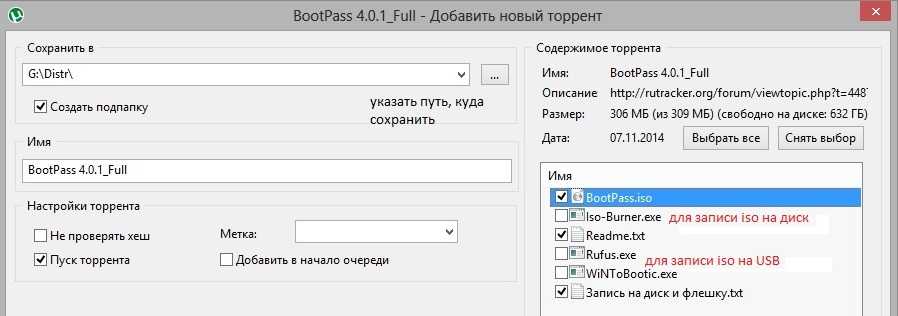 Скачивать можно не все файлы, а только необходимое- сам файл BootPass.iso.
