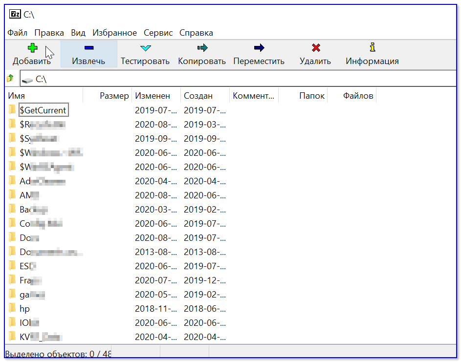 7-ZIP — главное окно архиватора