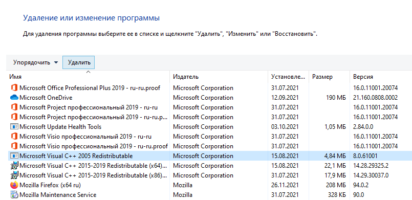 Переустанавливаем проблемный софт