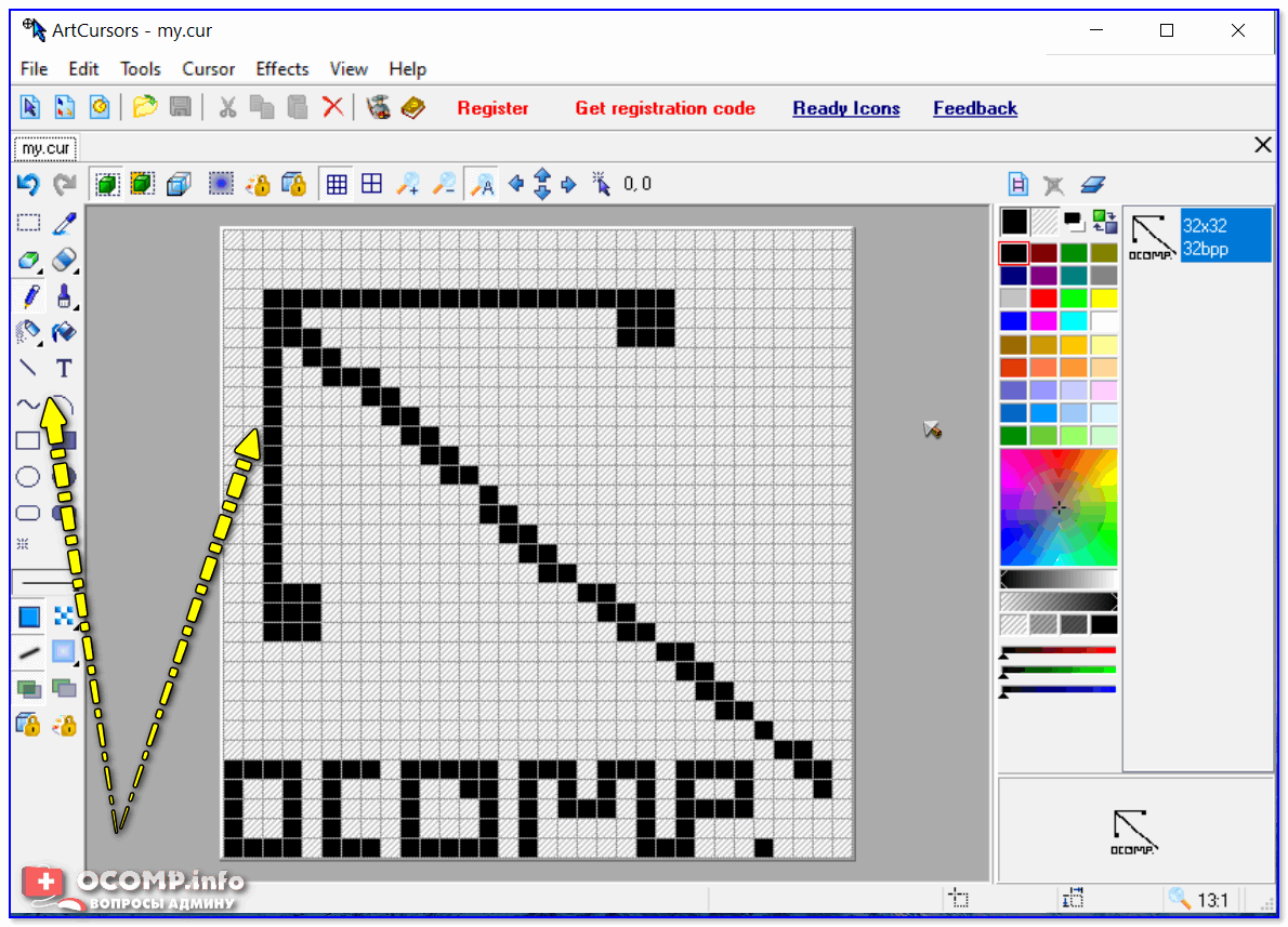Для этого лучше и легче всего использовать спец. программу — ArtCursors . По своему внешнему виду — она очень напоминает стандартный Paint.