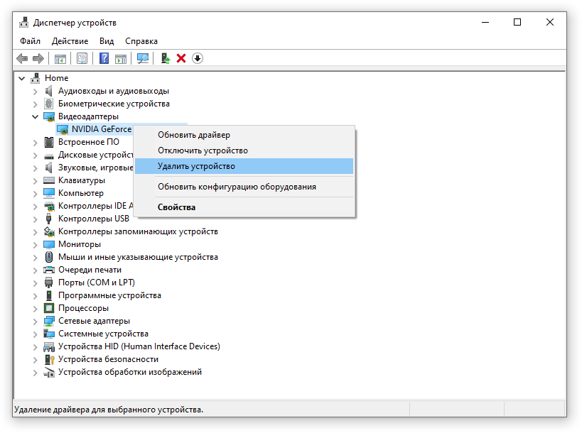 Щелкните драйвер правой кнопкой мыши и выберите Удалить устройство.