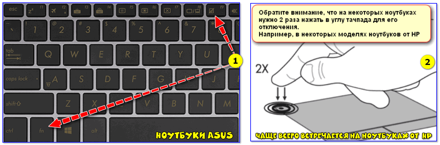 Варианты включения тачпада на ноутбуках разных марок (ASUS и HP)