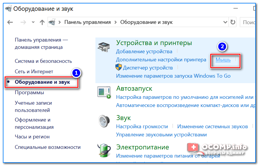 После, перейдите в панель управления Windows (не путать с параметрами!) и откройте раздел «Оборудование и звук/мышь» .