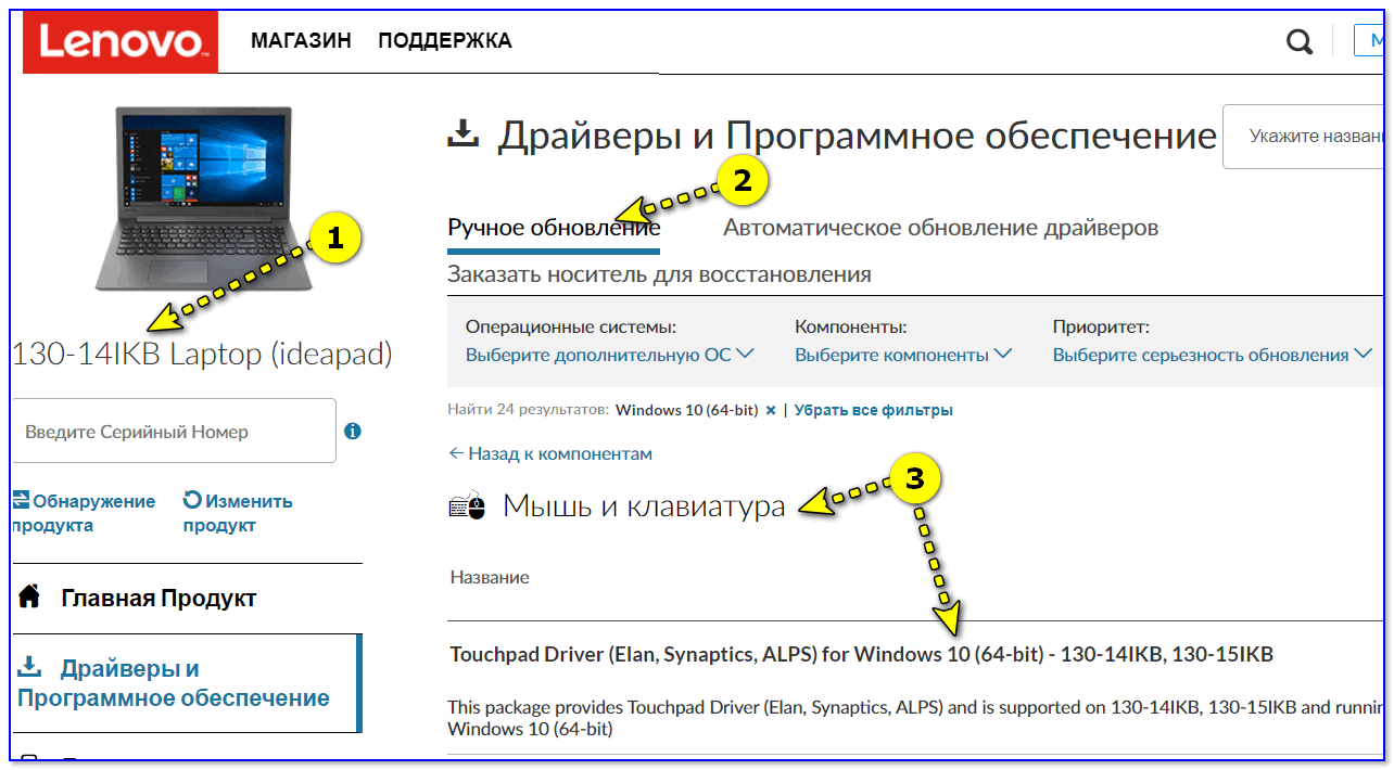 При возникновении ошибок во время обновления драйверов, необходимо скачать с сайта производителя ноутбука подходящий пакет. В нем будет идти утилита для управления тачпадом и все необходимые компоненты для него. Искать нужные драйвера необходимо по модели своего устройства.