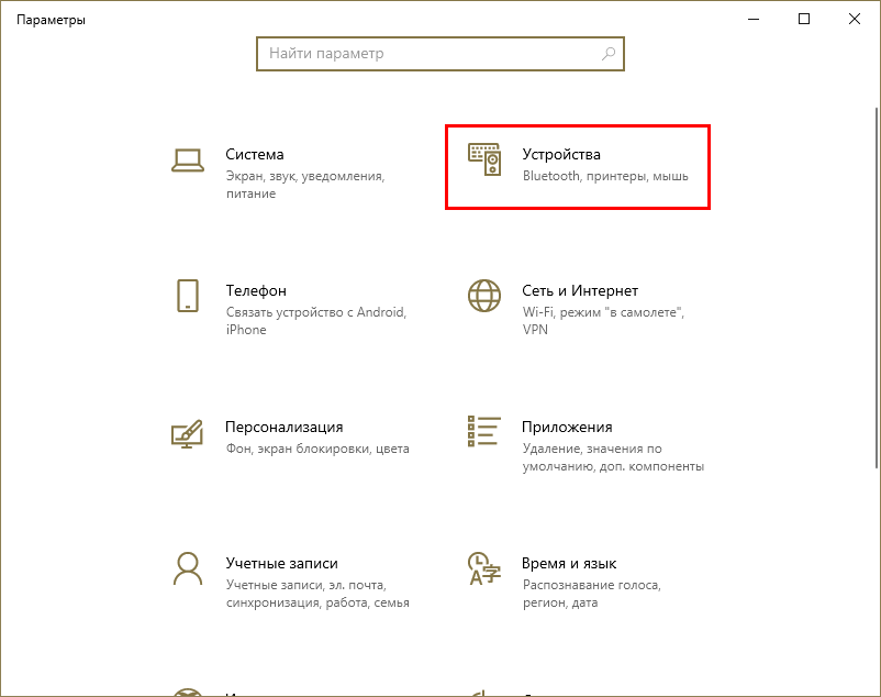 - Из «Категорий» переходим в пункт «Оборудование и звук», где расположен перечень папок («Звук», «Экран» и т.д.). Ищем папку «Устройства…», под которой находится вкладка «Диспетчер…»;