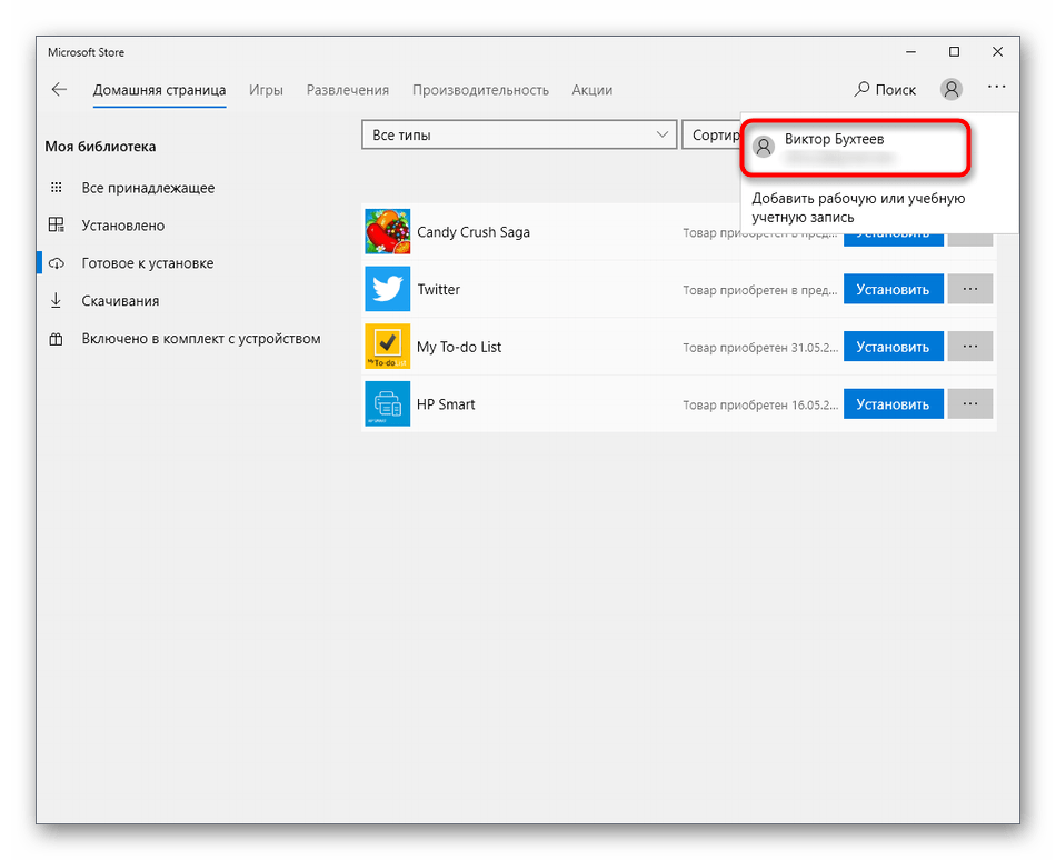 Повторная авторизация в MS Store поможет решить проблемы со скачиванием приложений, если они возникли из-за неправильного функционирования учетной записи. Эта операция займет несколько секунд, а выполняется так: