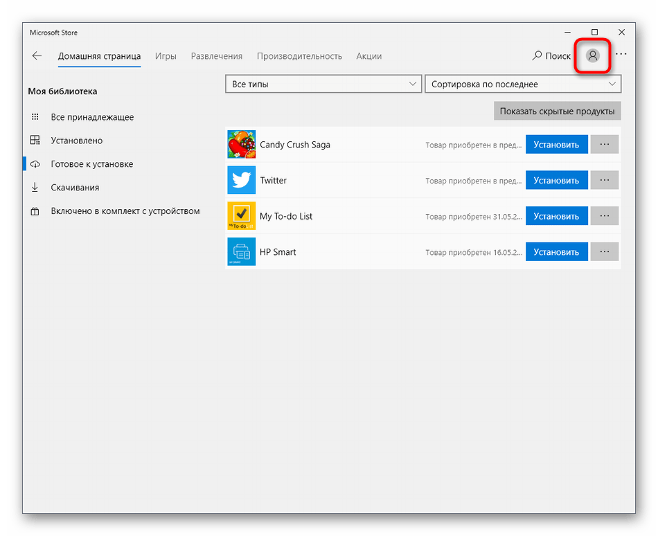 - Переустановка приложений В Microsoft Store выберите Библиотека. Выберите приложение, которое нужно переустановить, затем выберите Установить.
