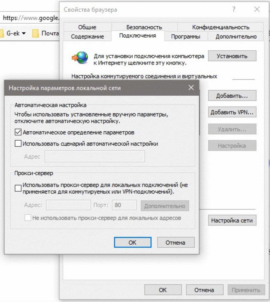 - Если вы используете прокси — отключите прокси сервер и проверьте работу магазина. Чтобы отключить прокси, откройте «Internet Explorer» → «Сервис» → «Свойства обозревателя» → вкладка «Подключения» → «Настройка Сети» → Под строкой «Прокси сервер» снимите флажок «Использовать прокси» и нажмите кнопку «Применить».