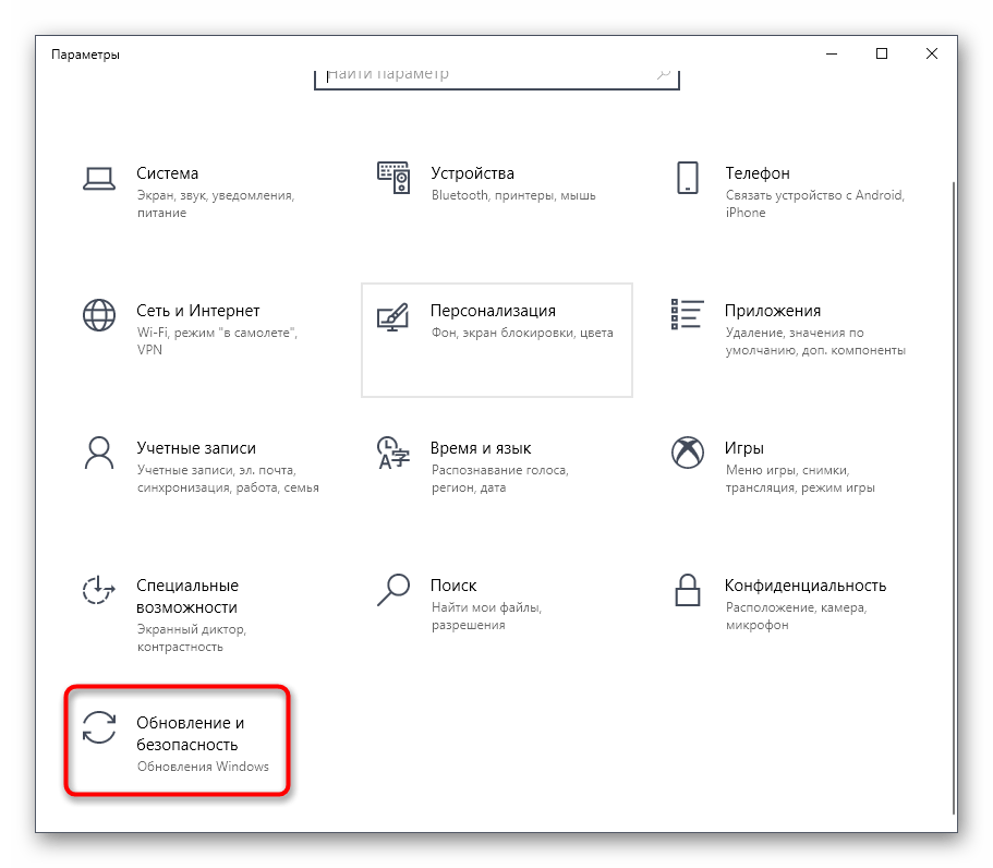 кликните по строке «Параметры»;
