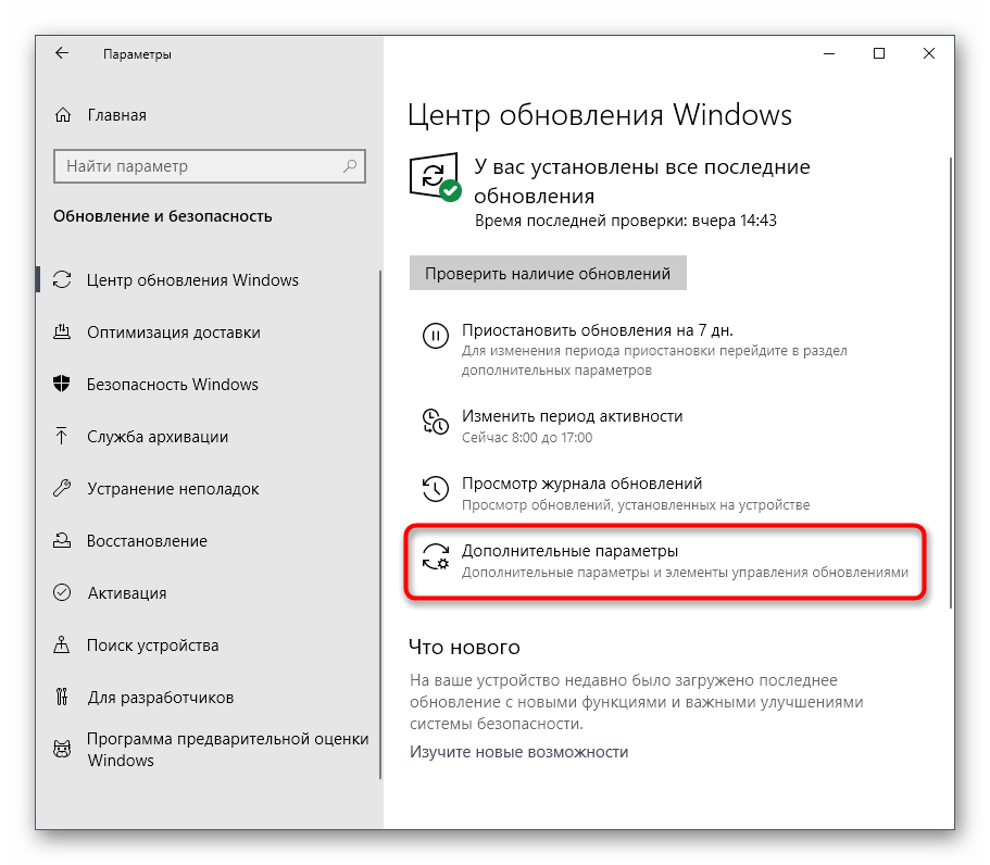 В первой же категории Центра обновления кликните по кнопке «Дополнительные параметры».