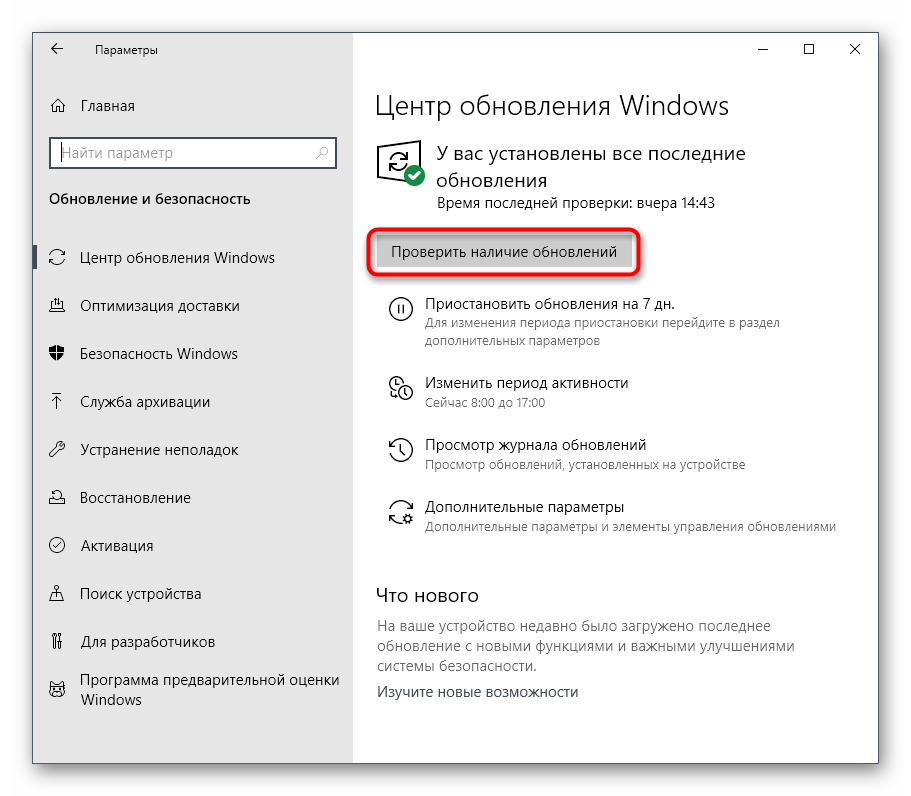 Если операционная система зависает при получении обновлений, рекомендуется перезагрузить ноутбук. Иногда такое простое действие помогает исправить ошибку (сбой системы). После включения устройства необходимо запустить «Средство устранения неполадок» (из Центра) и проверить наличие нововведений от «Microsoft» (через Параметры).