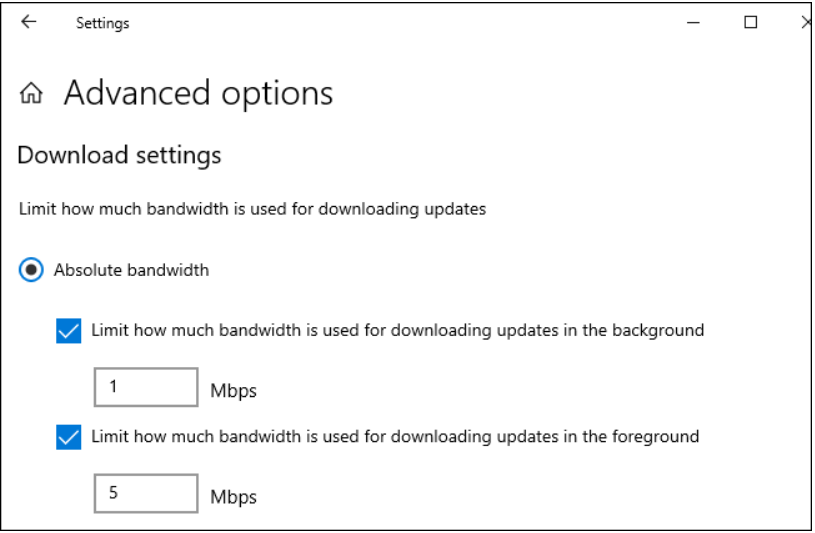 Вот и подвезли больше умных возможностей для приложения «Настройки». Теперь оно позволяет контролировать, максимальную скорость интернета, затрачиваемого на загрузку обновлений для Виндовс. Сейчас подобная функция также присутствует, но она позволяет устанавливать только процентное отношение к общей скорости. В Windows 10 20H1 появится доступ к установке точных ограничений «Абсолютной пропускной способности» в Мбит/сек. Более точная регулировка и прогнозированное завершение загрузки – полезная функция.