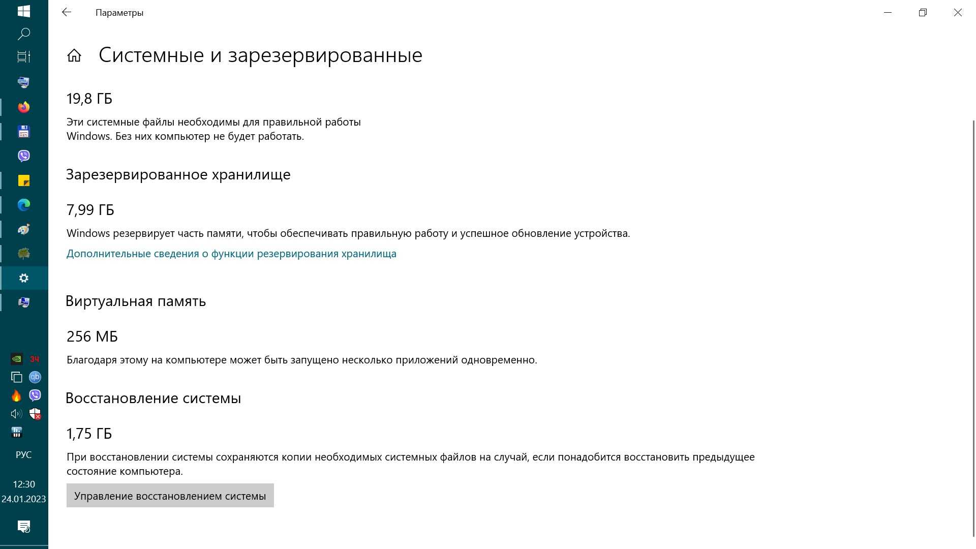 - Нажав «Показать больше категорий», вы увидите больше информации о том, что именно занимает место на системном диске: например, можно оценить место, занимаемое системными и зарезервированными файлами, а если нажать на него, то можно узнать, что именно находится в этом списке.