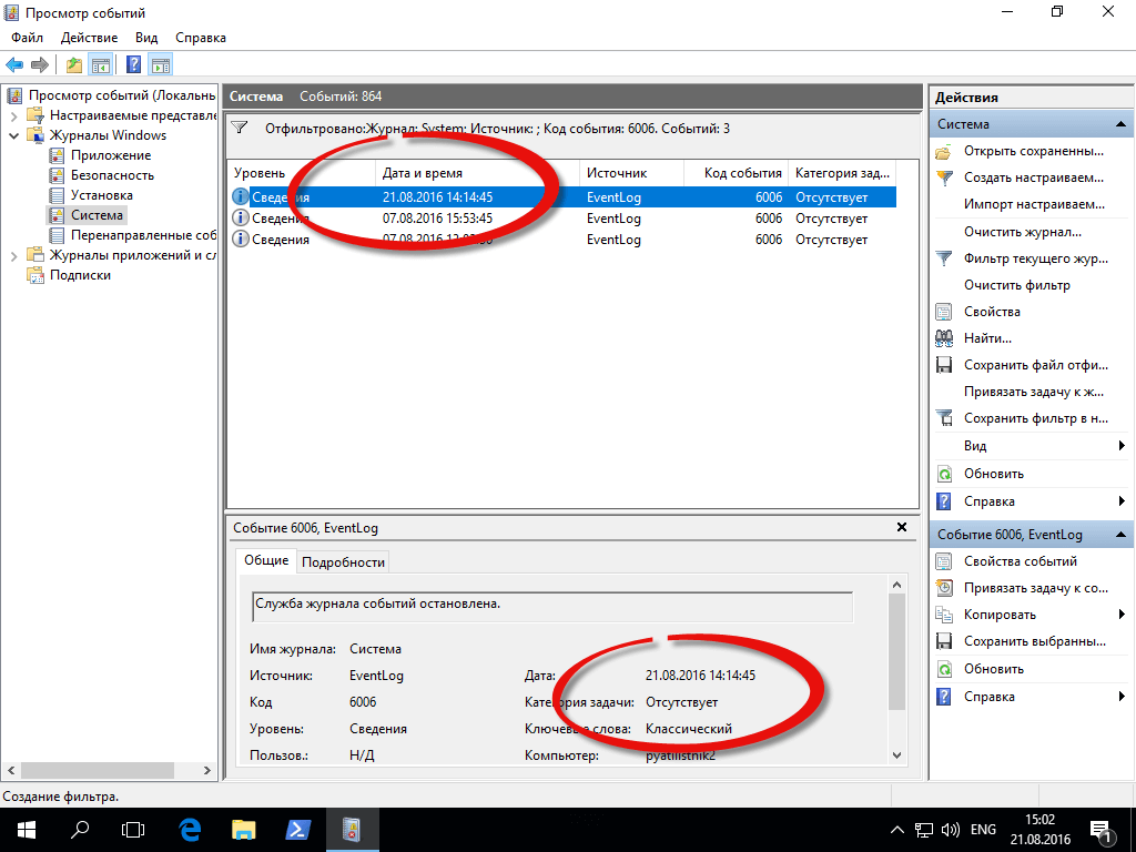 В итоге данный журнал Система отфильтруется и вы получите нужные события. Видим, наше время загрузки системы.