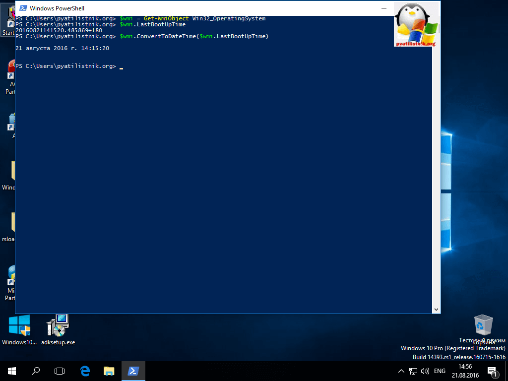 Тут мы воспользуемся powershell возможностями, чтобы определить время работы windows 10 и WMI данными. Сначала сделаем вывод WMI.