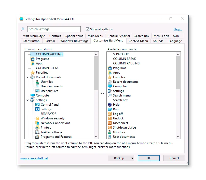 Использование Open-Shell для возвращения стандартного меню «Пуск» в Windows 10