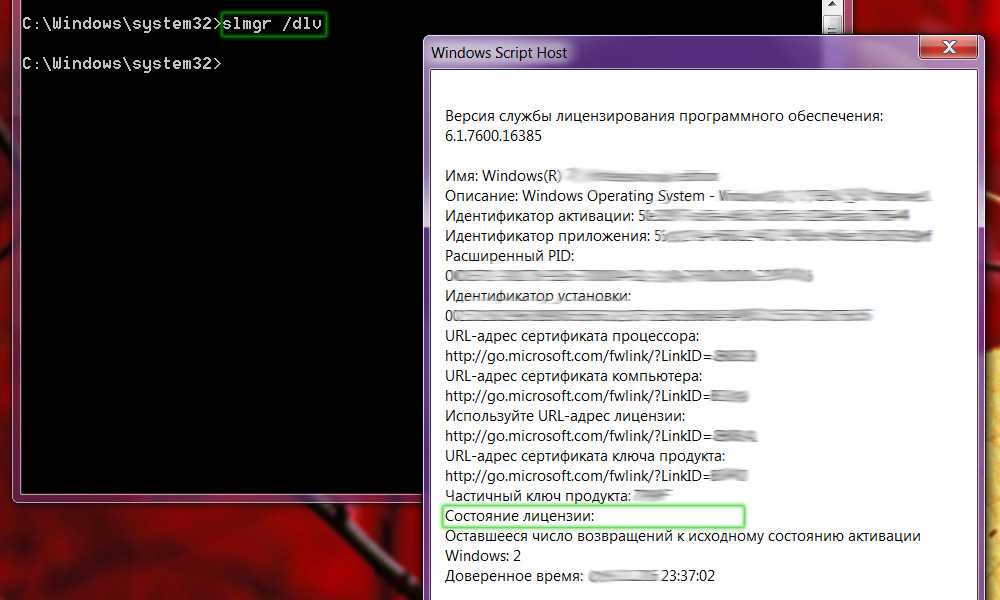 Перед вами появится окно со всей необходимой информацией. Внимательно посмотрите на пункт «Состояние лицензии». Если лицензия отсутствует, вызовите окно «Выполнить», воспользовавшись комбинацией клавиш Win+R, и введите в соответствующем поле (без кавычек) «slui 3».