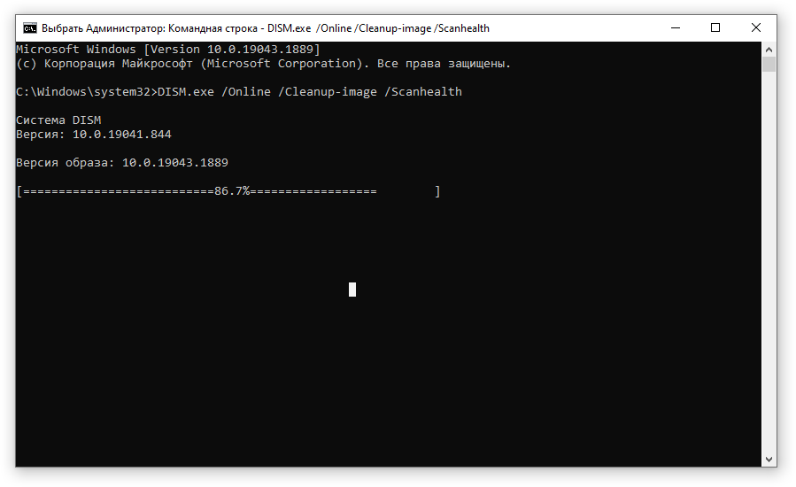 - Дождитесь завершение выполнения сканирования и восстановления, перезагрузите компьютер и попробуйте установить обновления Windows.