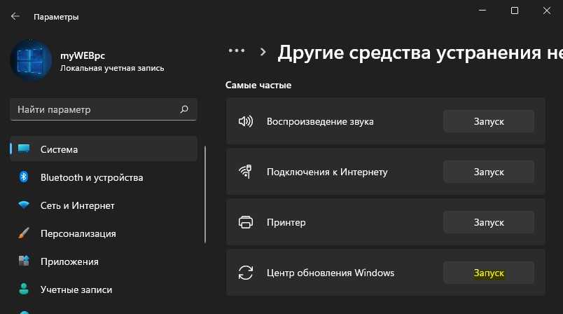 - Запустить диагностику Центра обновления Windows.