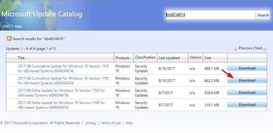 iv. Идти к Каталог Центра обновления Майкрософт и найдите коды для этих обновлений.