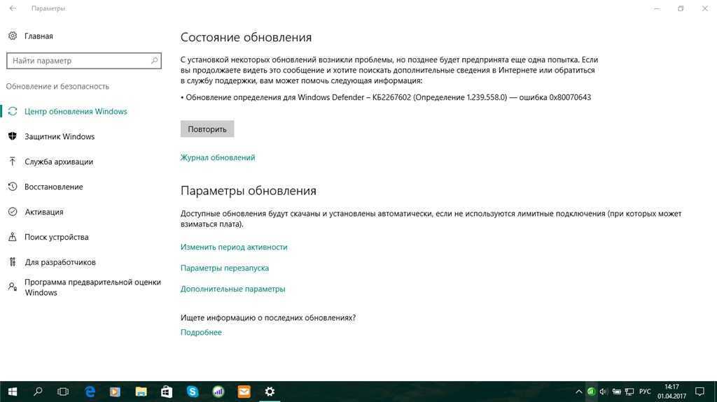 2.При установке обновлений возникли проблемы, но мы попробуем позже. Если вы продолжаете видеть это и хотите найти информацию в Интернете или обратиться в службу поддержки, это может помочь: (0x80070643).