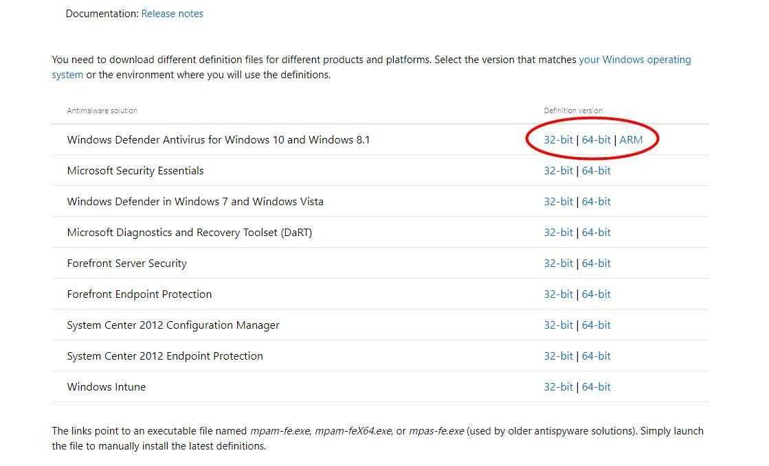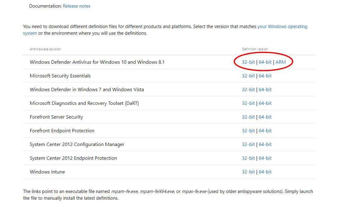 II. Загрузите файл обновления для Антивируса Защитника Windows, который соответствует вашей операционной системе (правильный для вашего типа системы).