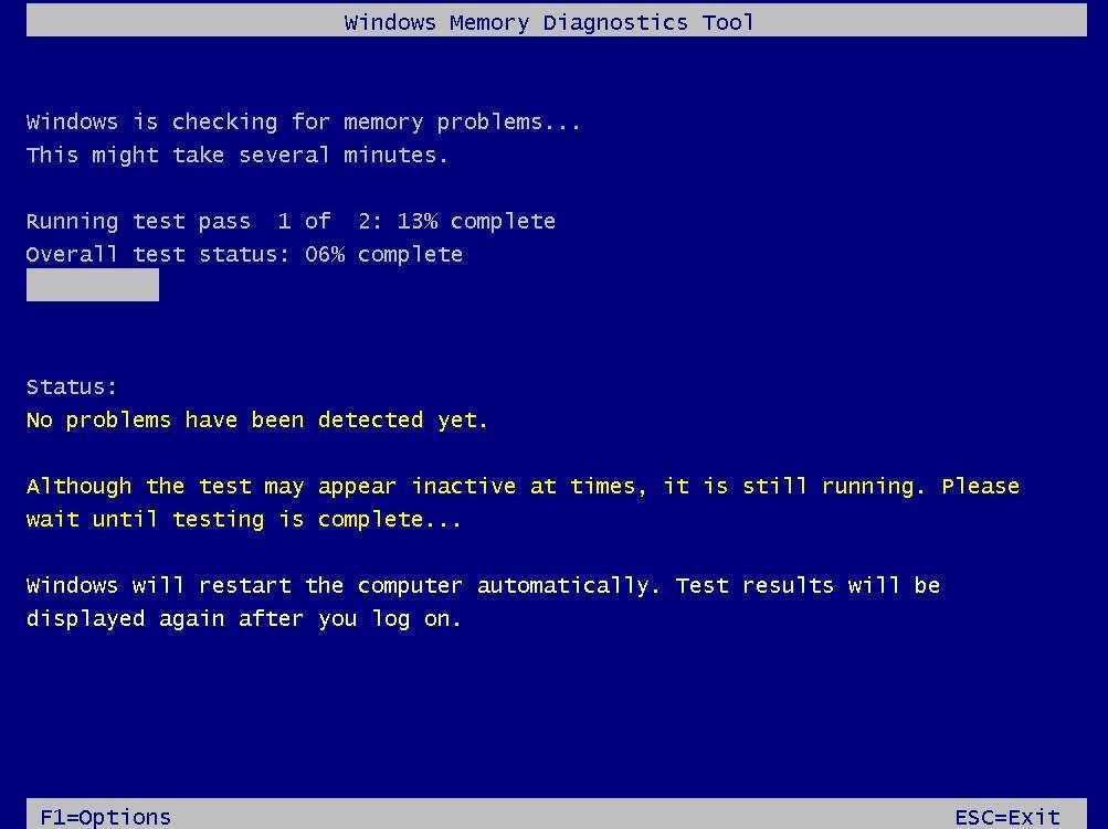 - Your PC will restart, and the utility will run a diagnostic scan of your system’s RAM. If any issues are detected, the diagnostic tool will automatically fix issues it finds.