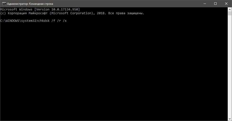 - пропишите команду chkdsk /r /f и нажмите Enter;