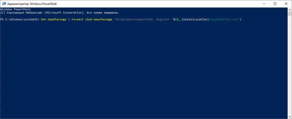 При наличии этой ошибки в родных приложениях Windows 10 можно заняться их перерегистрацией. Делается это следующим образом: