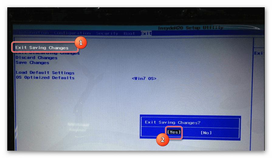 - Возвращаемся на вкладку «Exit» и сохраняем коррективы, выбрав параметр «Exit Saving Changes», жмём «Yes».