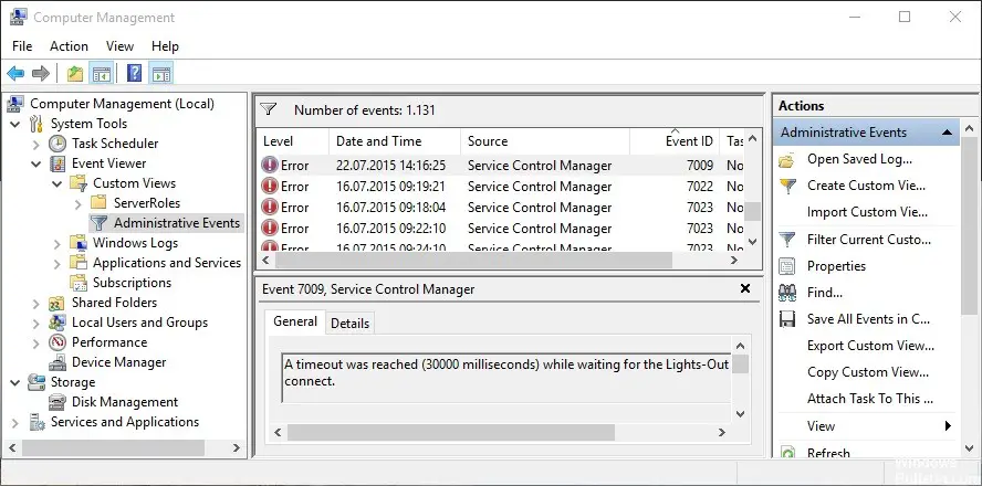 Это распространенная ошибка Windows, которая обычно возникает после завершения загрузки Windows. Эта ошибка появляется в приложении просмотра событий Windows 10 и гласит: «Истекло время ожидания (30000 30000 миллисекунд) при ожидании соединения Lights-Out» или «Истекло время ожидания (XNUMX XNUMX миллисекунд) при ожидании соединения ServiceName».