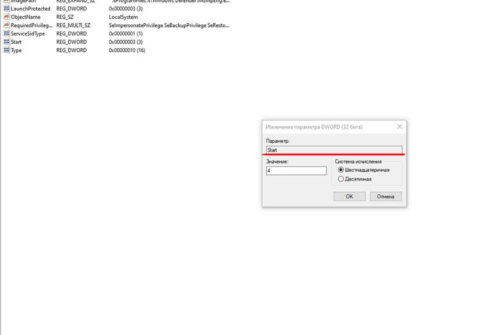 - Найдите параметр Start, откройте его и впишите цифру «4» в новом окне.