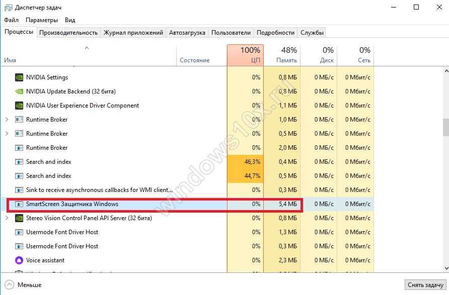 Вторая причина интереса к вопросу, как отключить защитник Виндовс 10 – слабая аппаратная часть компьютера. Если мы внимательно пролистаем диспетчер задач, то увидим, что разные элементы программного комплекса занимают ресурсы.