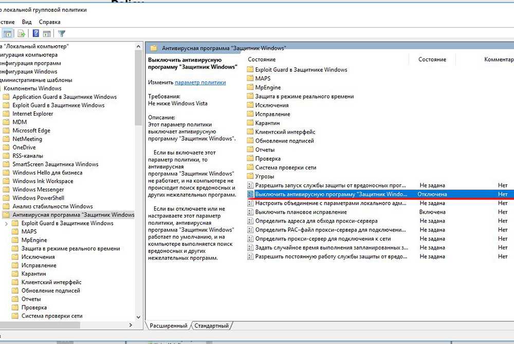 Если все же у вас есть острая необходимость отключить защитник Windows 10 навсегда, то воспользуйтесь дальнейшей инструкцией.