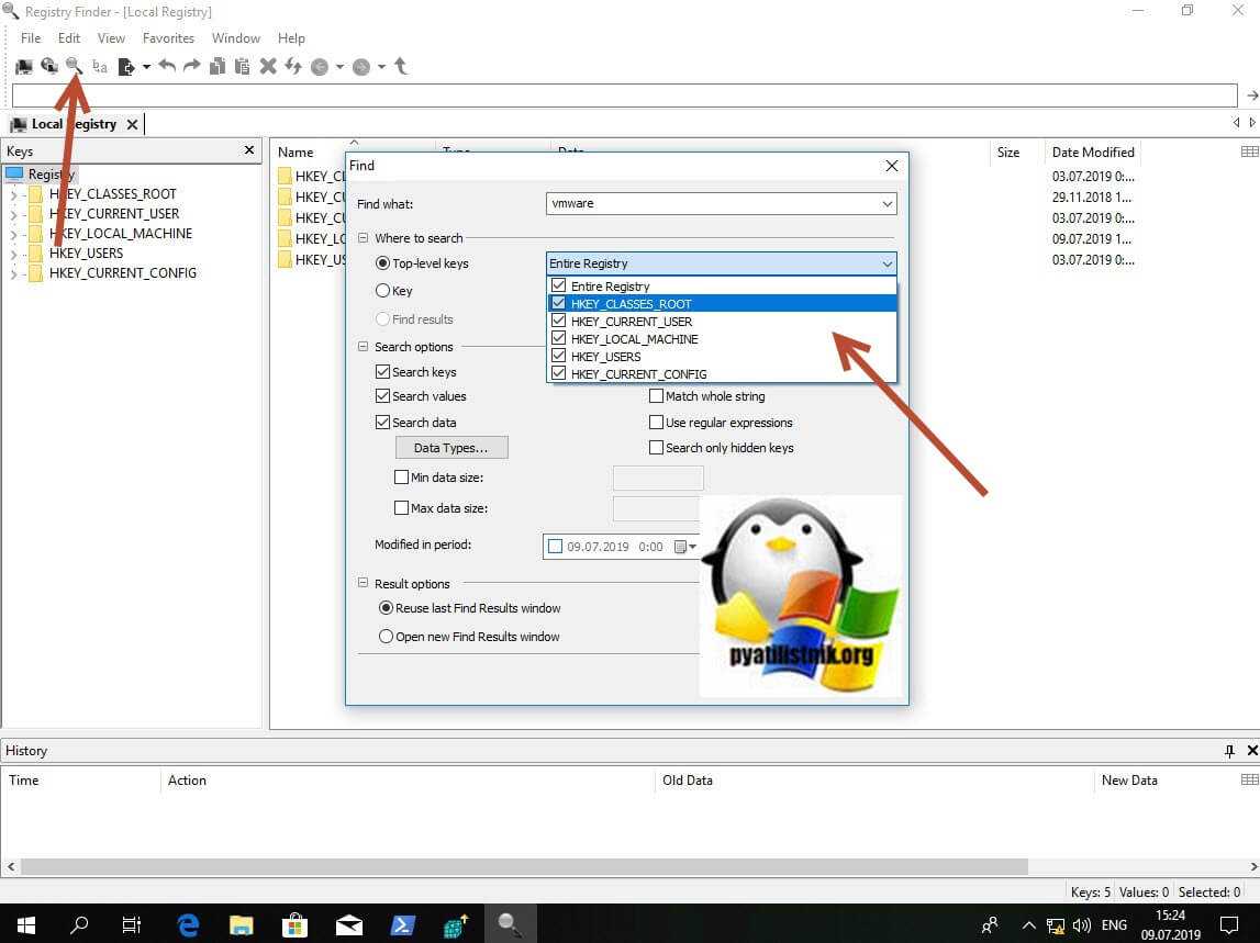 Поиск в реестре Windows через Registry Finder