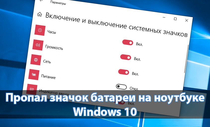 Пропал значок батареи на ноутбуке с Windows 10, иконка аккумулятора