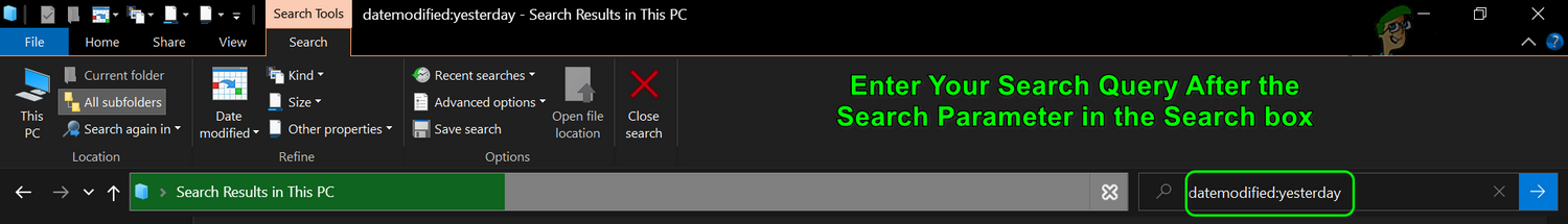 Существует простой метод, который поможет вам установить параметры поиска перед выполнением поиска. В этом методе вы можете добавить необходимые параметры поиска на панель быстрого доступа проводника, а затем использовать эти ярлыки для настройки поиска. Процесс такой: