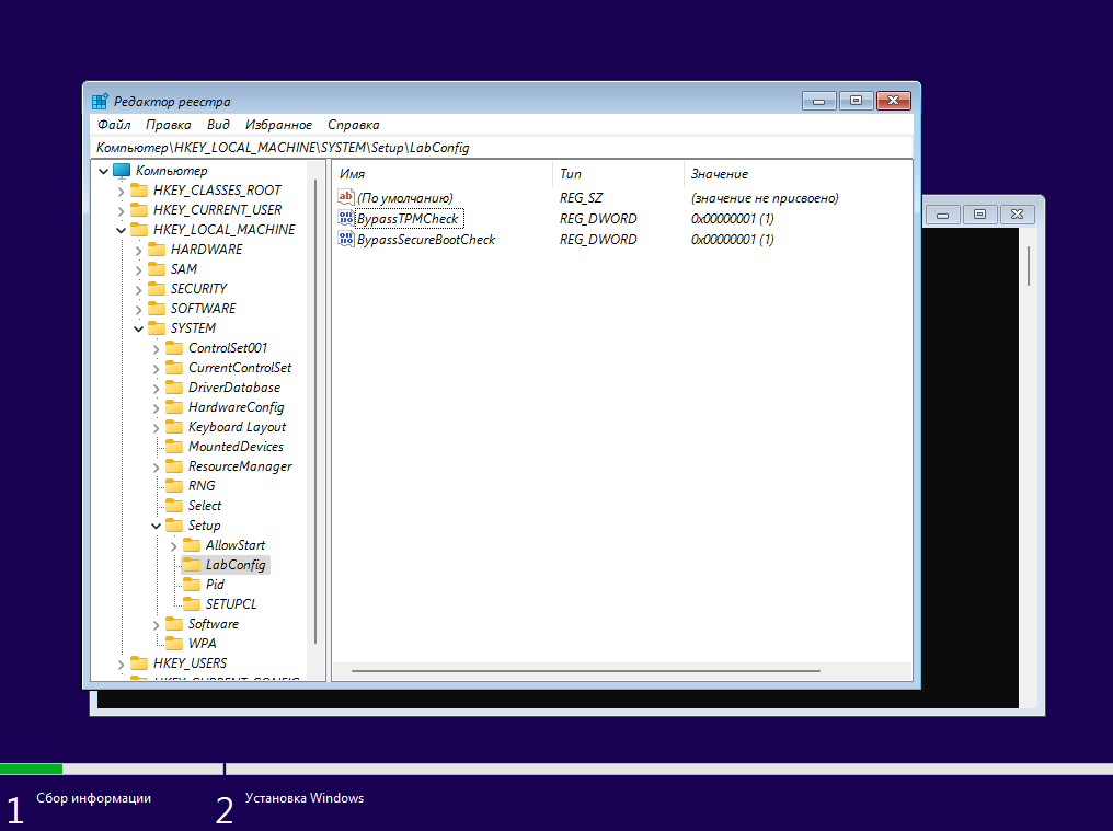 Теперь нам нужно ввести название нового параметра «BypassTPMCheck».