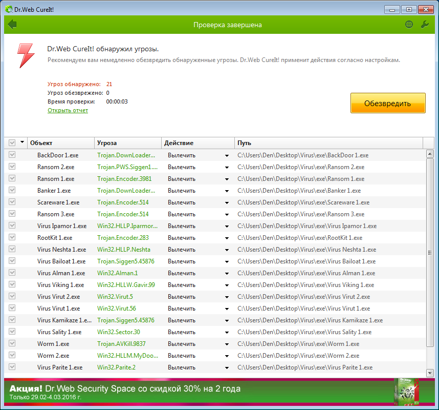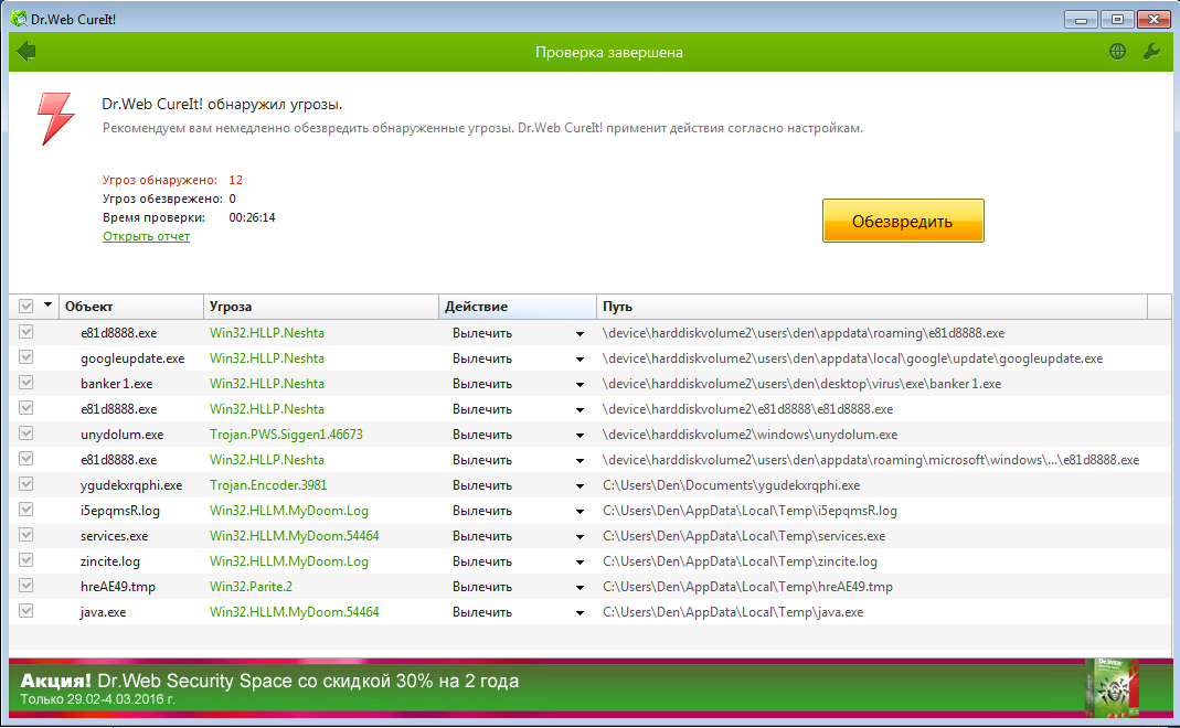 Следующим шагом является стандартная процедура, после которой вам будет отправлен подробный отчет обо всех обнаруженных угрозах. Утилита доступна на сайте производителя.