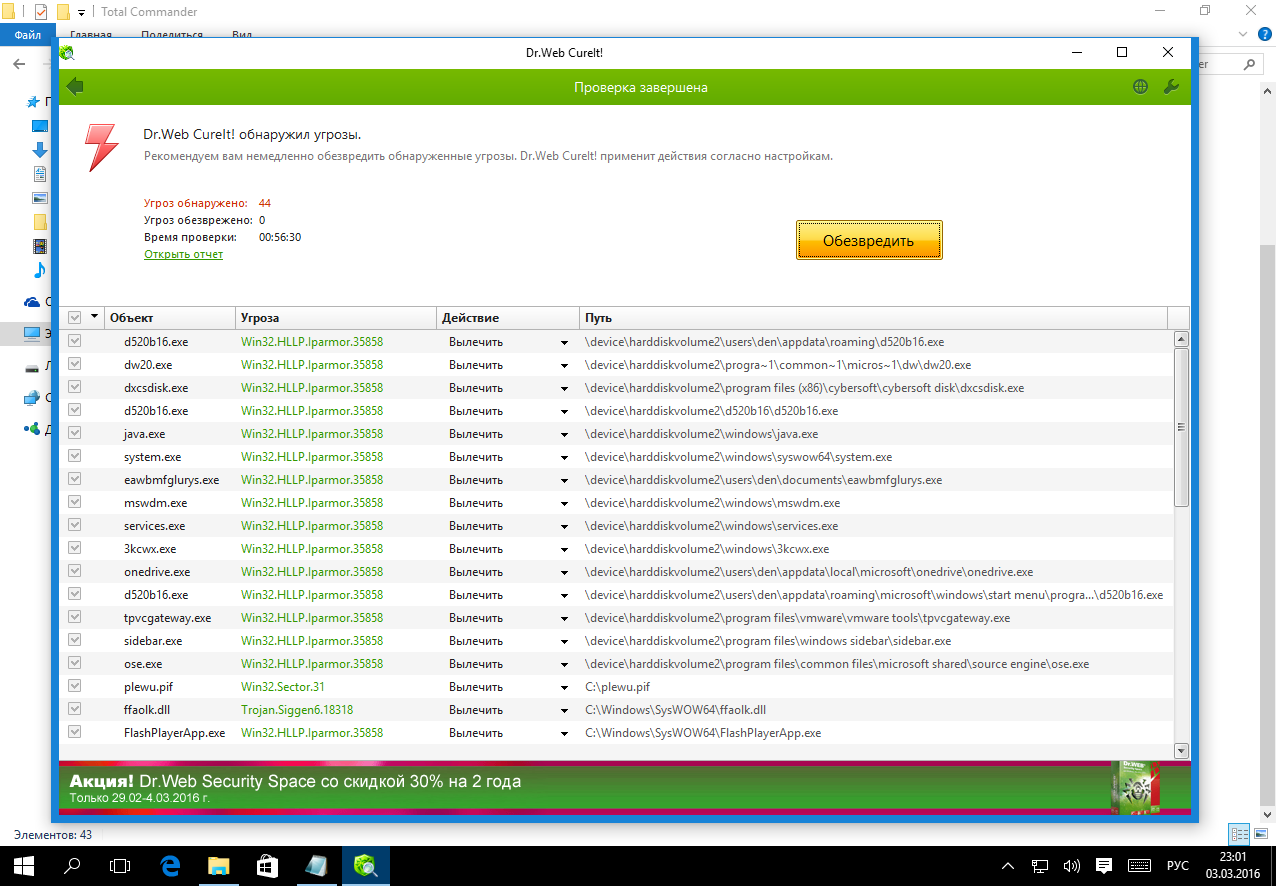 Результат действия вируса. Самое интересное в том, что CureIt не видела проблемы в этих файлах. Скорее всего, они просто испорчены вирусом