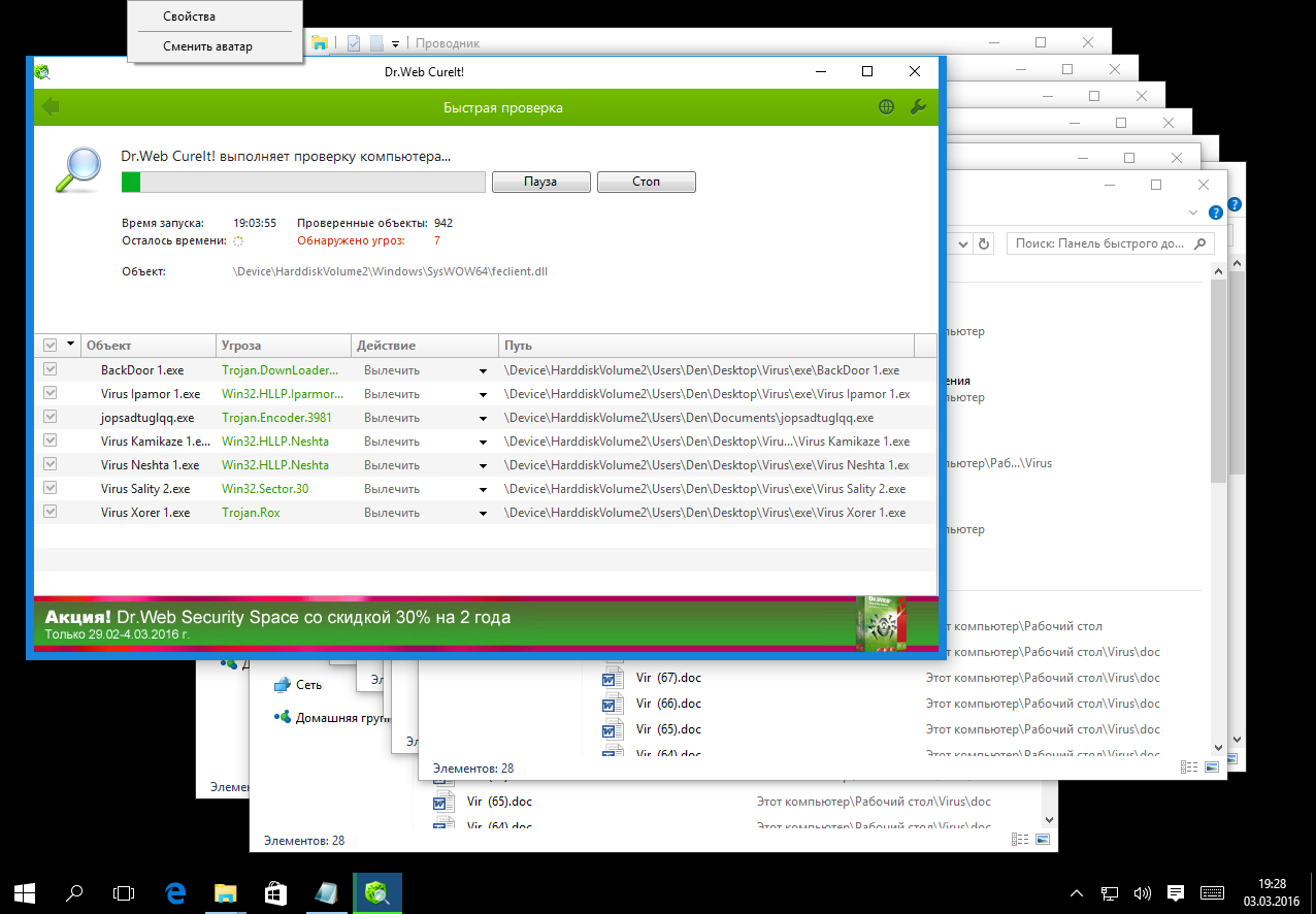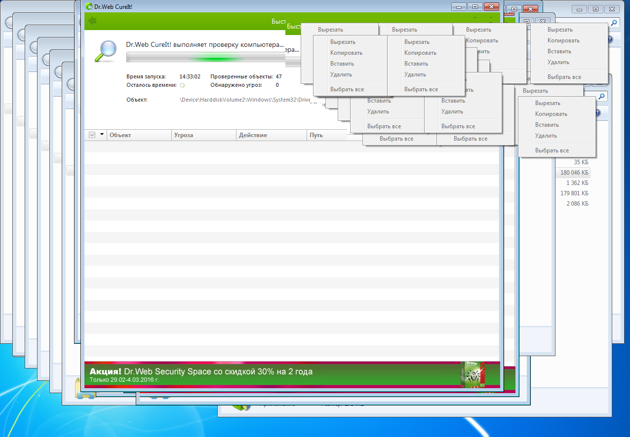 Dr.Web занят работой. Вирусы, похоже, тоже. Windows 7