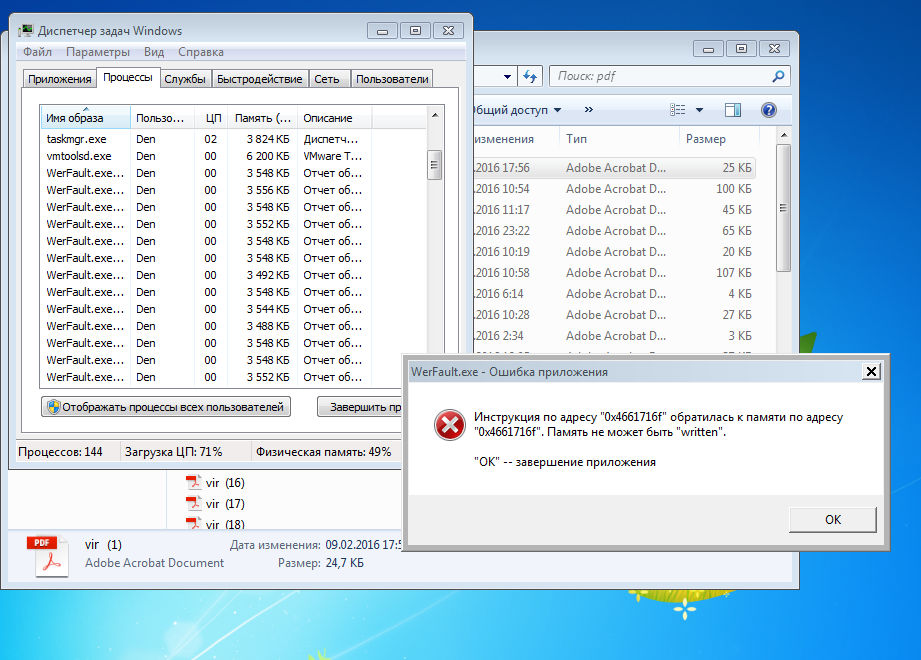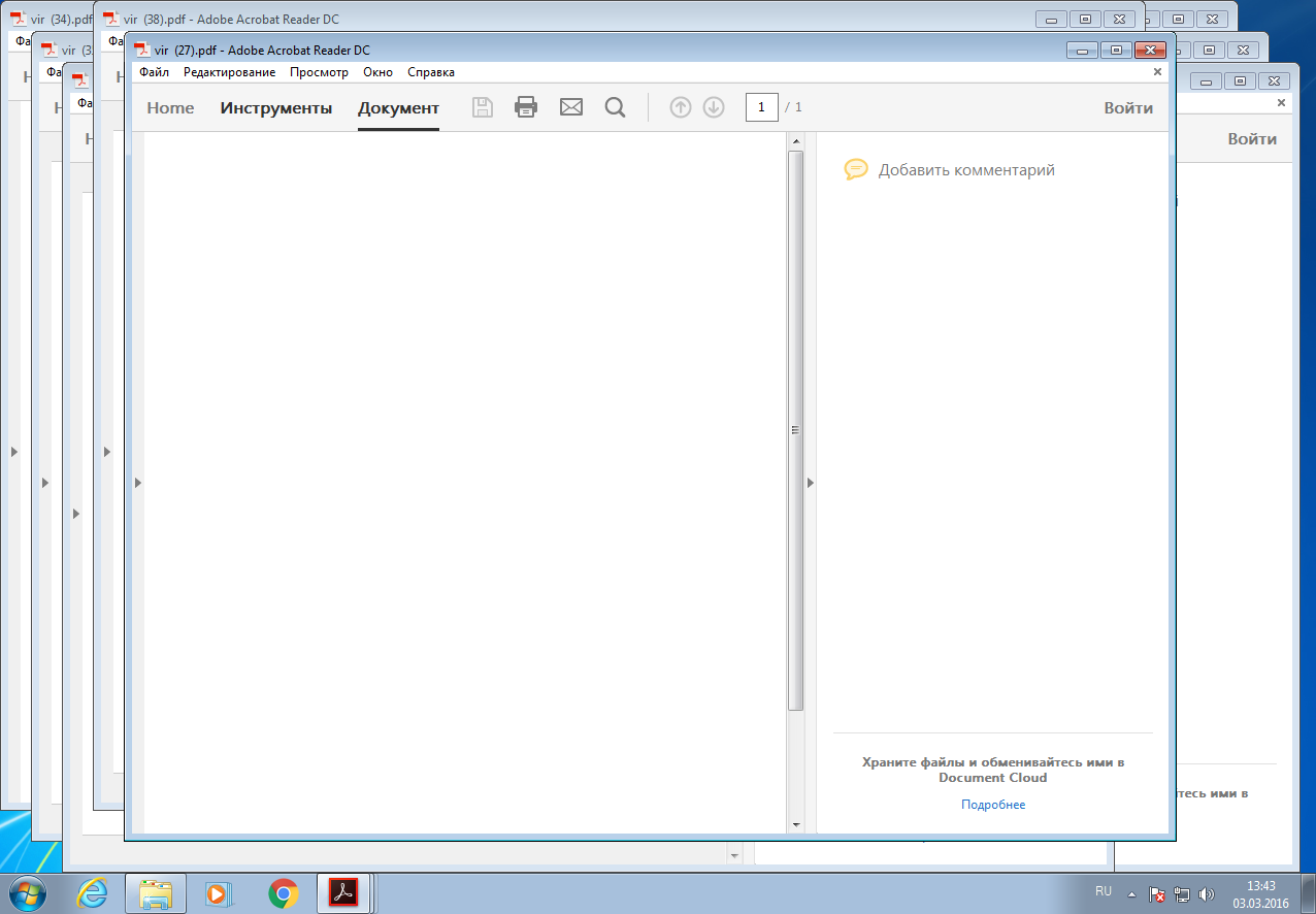 Попытка открыть сразу с дюжину инфицированных PDF в Win 7