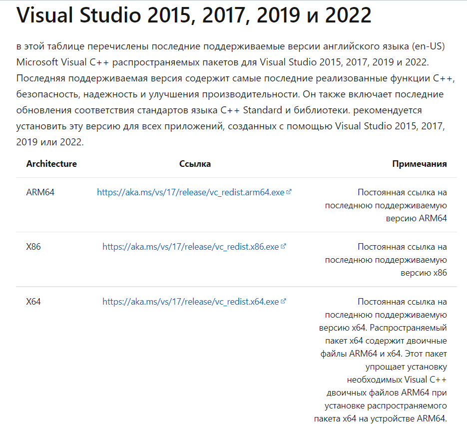 Дополнительно нужно активировать актуальный Microsoft Visual C++.