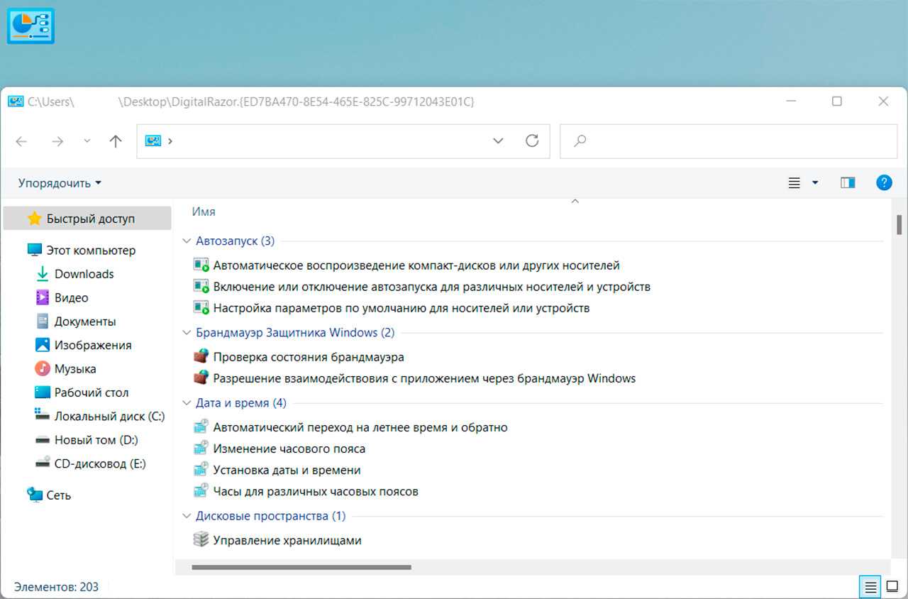 Вот и все. Теперь, когда вы откроете эту папку, вы увидите несколько десятков различных настроек, в том числе такие, которые недоступны ни в «Параметрах», ни в «Панели управления».