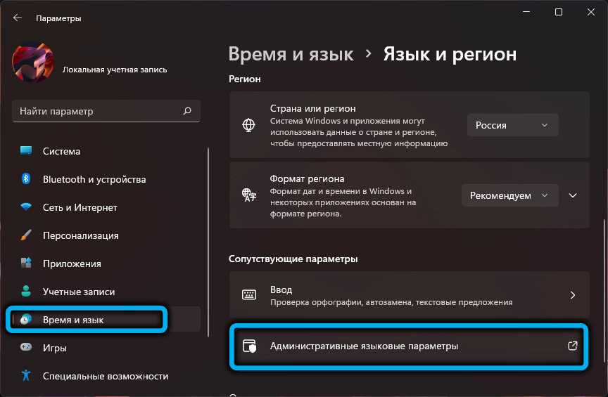 Итак, снова заходим в «Настройки», выбираем вкладку «Время и язык», в правом блоке – раздел «Язык и регион». Нас интересует строка «Административные языковые параметры», кликаем по ней и в новом окне жмём кнопку «Копировать параметры…».