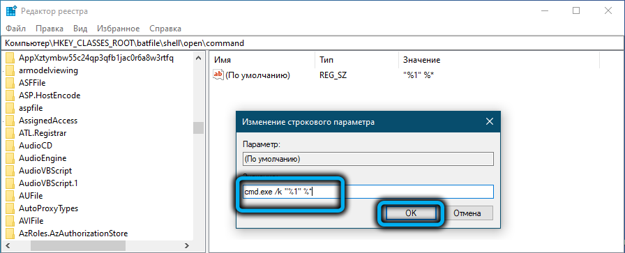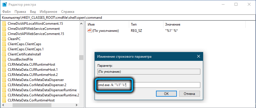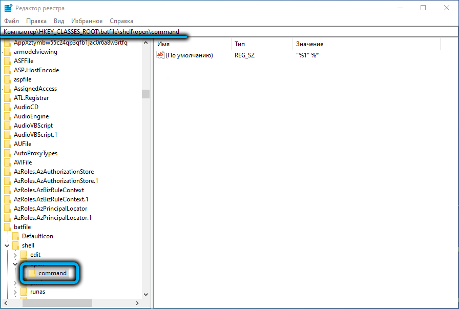 Точно такие же манипуляции производим с веткой HKCRcmdfileshellopencommand.