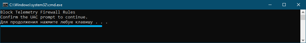 Команда pause приостанавливает выполнение последовательности команд с выводом в окно терминала текста «Для продолжения нажмите любую клавишу…». Таких команд может быть много, в результате продолжение выполнения скрипта вплоть до его закрытия будет происходить только после нажатия вами какой-нибудь клавиши.