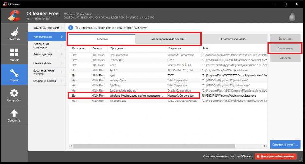 Примечание: для более гибкой настройки и частичной автоматизации действий лучше использовать программы оптимизации, такие как CCleaner, в которых вы можете не только найти предыдущие разделы для управления элементами автозапуска и запланированными задачами, но заодно очистить реестр или избавьтесь от компьютерного мусора на жестком диске.
