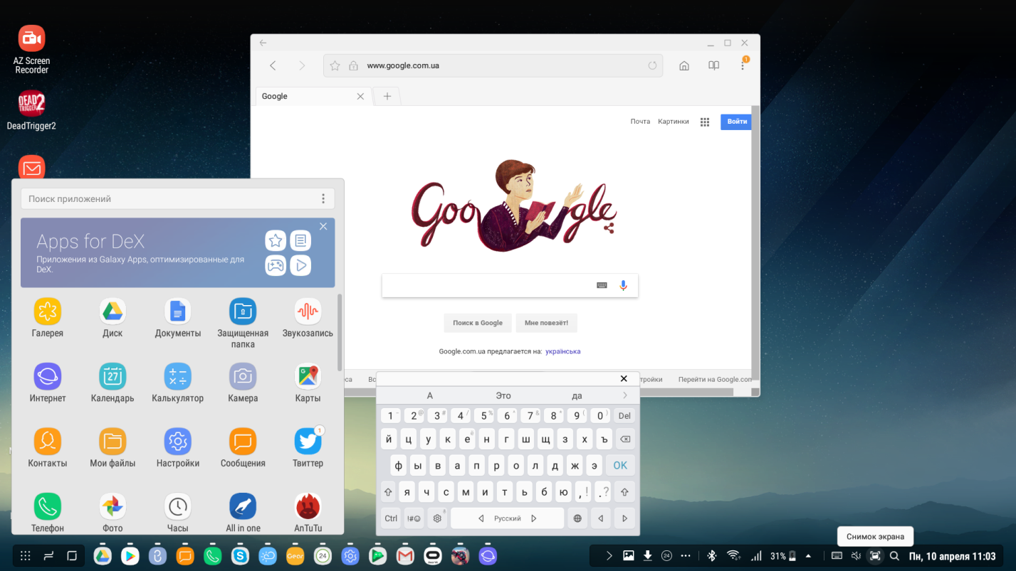 Скриншот Samsung DeX
